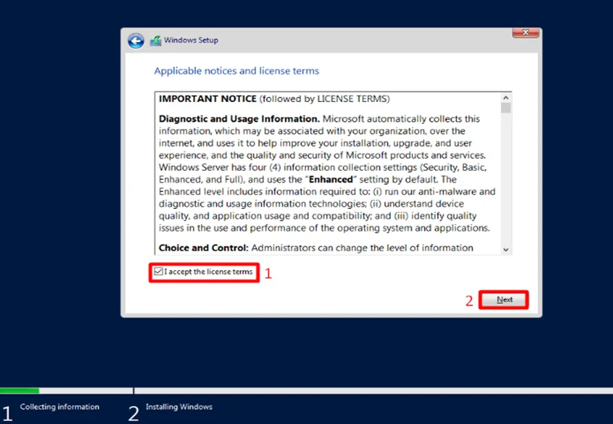 - Đọc kỹ và chấp nhận các điều khoản sử dụng (License terms) từ Microsoft để tiếp tục.