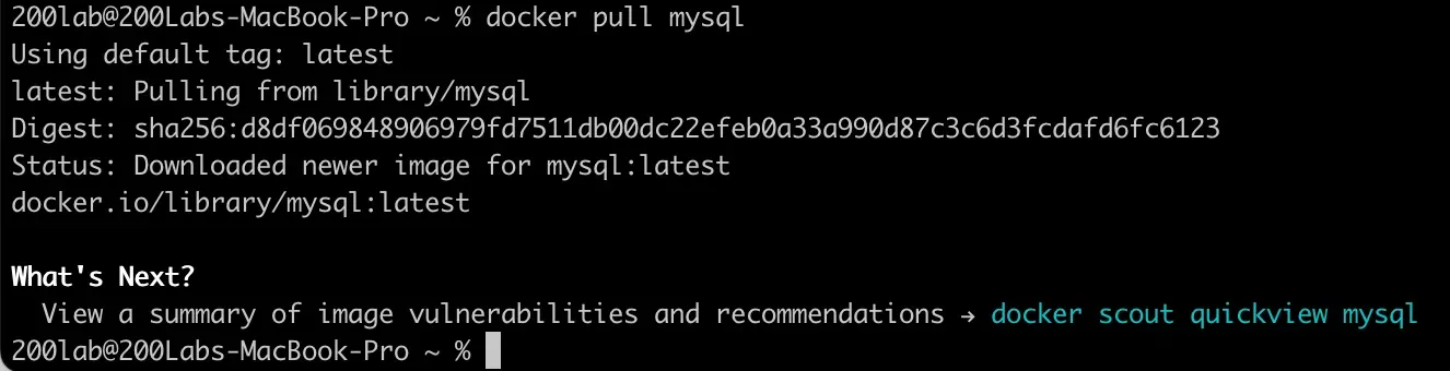 Việc chạy lệnh docker pull mysql sẽ lấy phiên bản mới nhất. Nếu cần phiên bản cụ thể, hãy thêm tag phía sau: docker pull mysql:8.0.