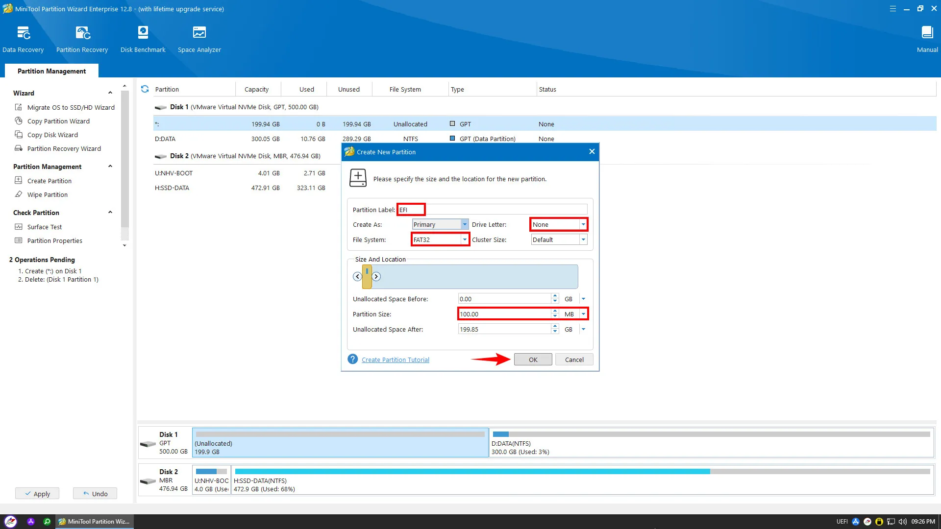 Tạo phân vùng khởi động EFI và phân vùng hệ thống