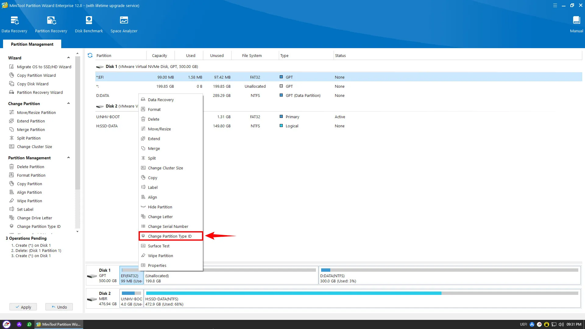 Điểm mấu chốt để máy nhận diện phân vùng khởi động là ID định danh. Bạn chuột phải vào phân vùng EFI vừa tạo, chọn “Change Partition Type ID”.
