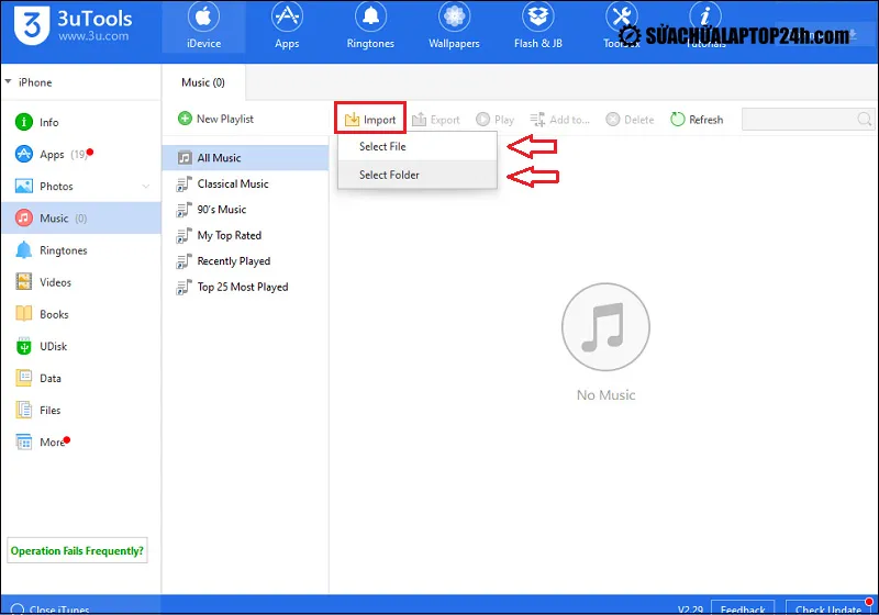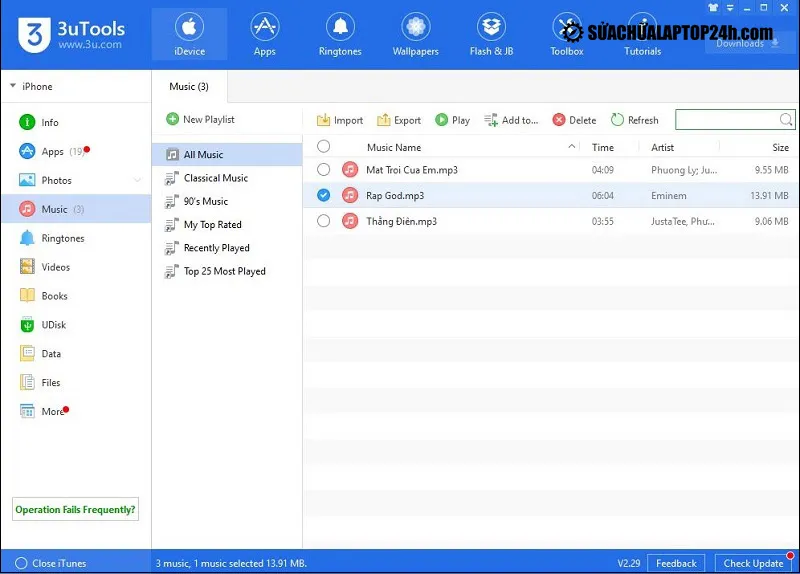 3uTools là phần mềm quản lý iOS của bên thứ ba, giao diện trực quan và không xóa dữ liệu có sẵn khi copy nhạc từ máy tính vào iPhone.
