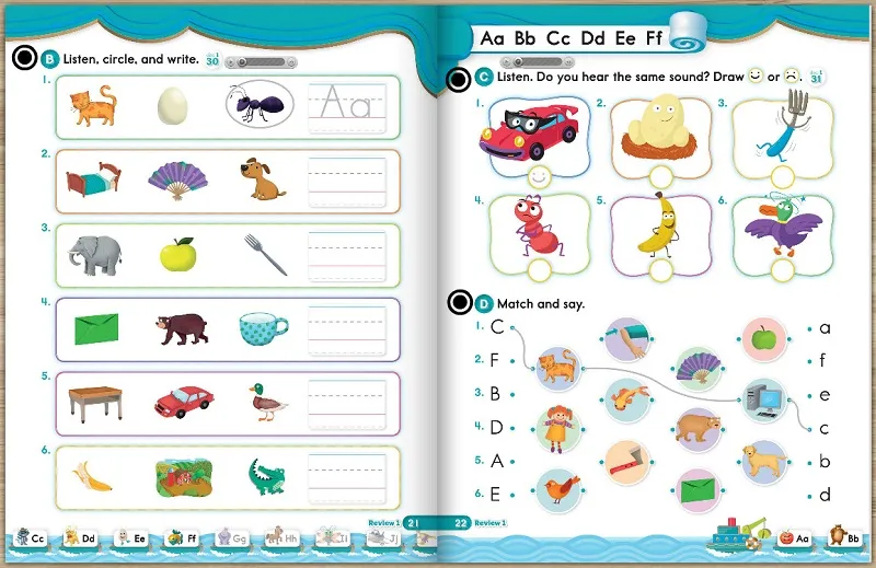 Ở cấp độ đầu tiên, phần mềm tập trung hoàn toàn vào 26 chữ cái trong bảng chữ cái tiếng Anh. Tuy nhiên, thay vì chỉ đọc tên chữ cái (như A là /ei/), trẻ sẽ được học âm tương ứng (A là /æ/). Giao diện tương tác cho phép trẻ nhấn vào từng chữ cái để nghe phát âm và xem các ví dụ sinh động qua hình ảnh động (animation). Điều này giúp kích thích cả thính giác và thị giác, tạo ra sự ghi nhớ đa tầng.